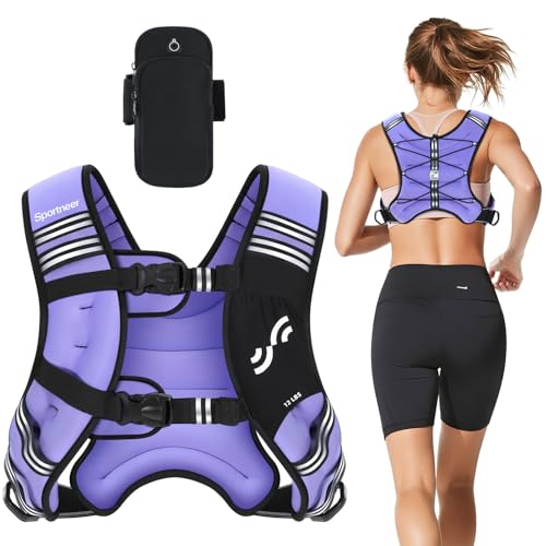 Sportneer viktväst med reflekterande ränder för tyngdlyftning, löpning och fitness 3,6 kg/5,4 kg/6,8 kg/ 9 kg/ 11 kg, bröststorlek justerbar, praktisk väska, fylld viktväst
