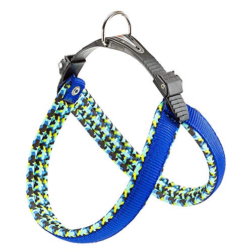 Ferplast sele för medelstora hundar AGILA FANTASY 3 hundsele med mjuk stoppning, snabbfrigörande och fästsystem, bröststorlek 42–50 cm. Blå
