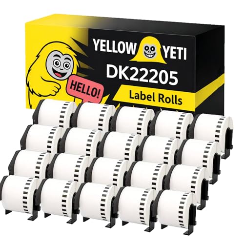 Yellow Yeti 20 ersättning Brother etikettskrivare tejp kontinuerlig vit DK-22205 kompatibel med Brother QL 800 500 550 710W 720NW 800 810W 820NWB 1110NWB (62 mm x 30,48 m)