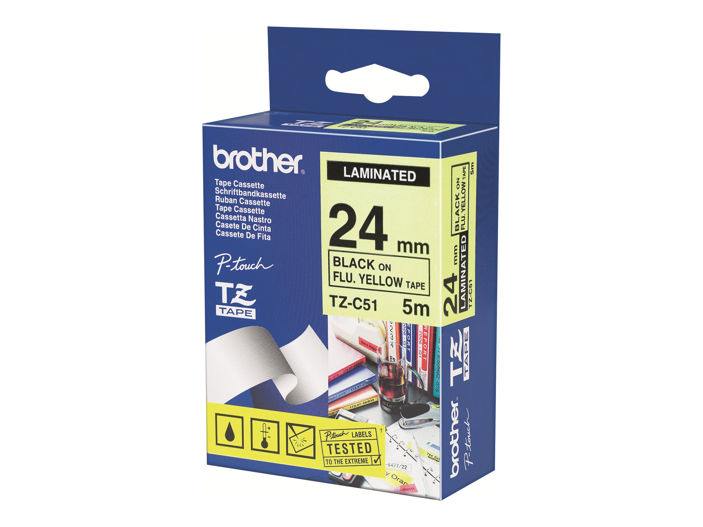 Brother Tzc51 - Svart På Gult - Rulle ( 2,4 Cm X 8 M) Bandlaminat - För Brother Pt-D600 P-Touch Pt-2470, 3600, D800, E550, H500, P750 P-Touch Cube Plus Pt-P710