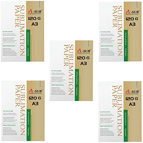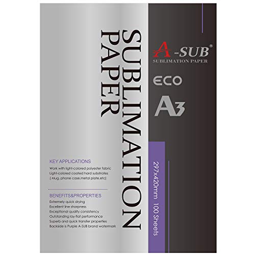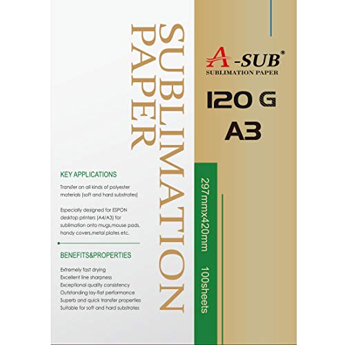 A-SUB sublimeringspapper A3, 297 x 420 mm, 100 ark, 120 gsm, kompatibel med EPSON, SAWGRASS, RICOH, BROTHER sublimeringsskrivare