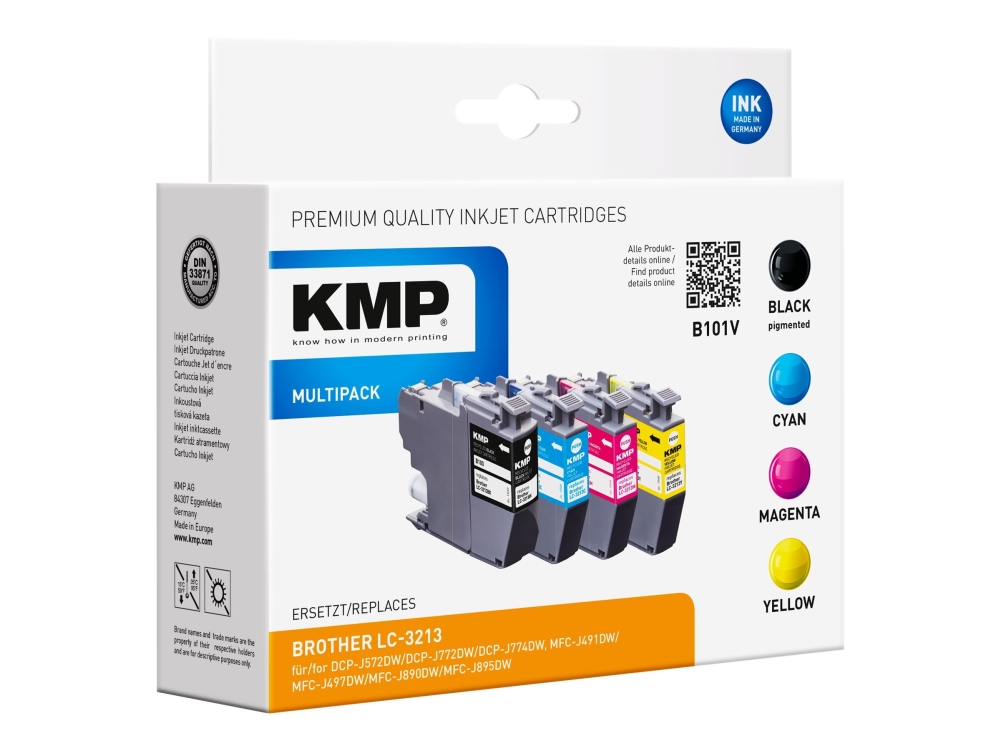 Kmp B101v - 4-Pack - Svart, Gul, Cyan, Magenta - Kompatibel - Bläckpatron (Alternativ För: Brother Lc3213bk, Brother Lc3213c, Brother Lc3213m, Brother Lc3213y) - För Brother Dcp-J572, Dcp-J772, Dcp-J774, Mfc-J890, Mfc-J895