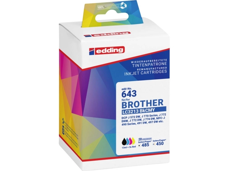 Edding Ink Ersätter Brother Lc3213bkcmy Kompatibel Combi Pack Svart, Cyan, Magenta, Gul Edd-643 18-643