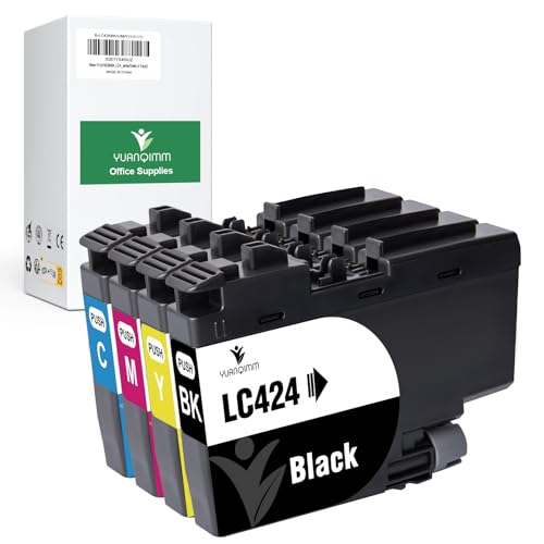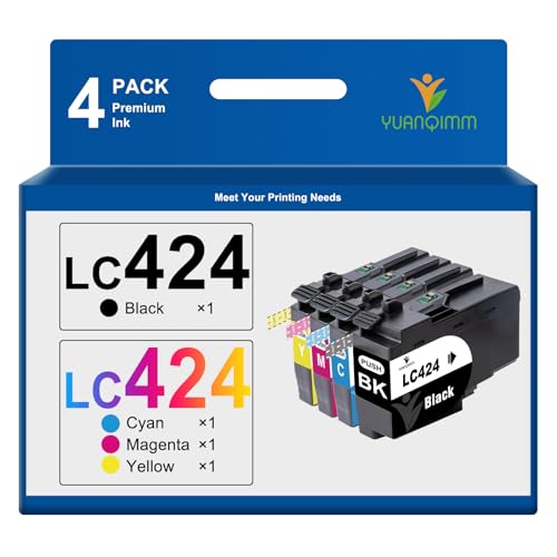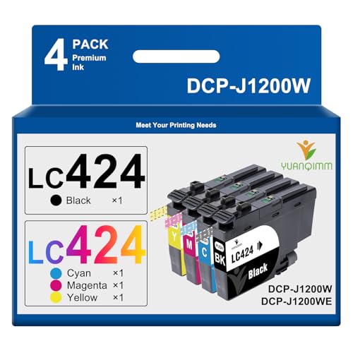 YUANQIMM LC424 Cartridges Multipack Compatible for Brother LC-424 LC424 LC-424VAL Printer Cartridges for Brother DCP-J1200W DCP-J1200WE DCP J1200W DCP J1200WE (Black/Cyan/Magenta/Yellow, Pack of 4)