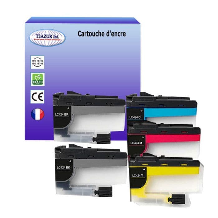 T3AZUR - Pack med 5 kompatibla Brother LC424-bläckpatroner för Brother Mini 19 Biz-SL