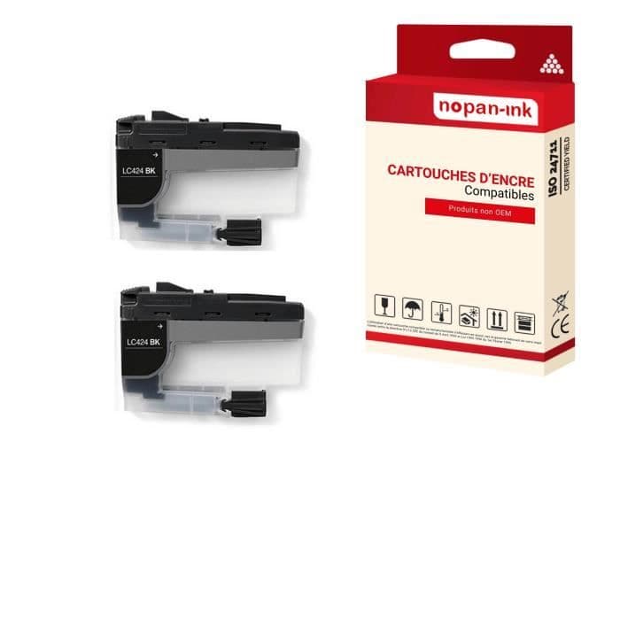 Kartong för BROTHER LC424 LC424XL Kompatibel Svart x 2 - NOPAN-INK med DCP J1200W.