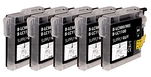 Supply Guy 5 bläckpatroner kompatibel med Brother LC-985 Svart för DCP-J125 DCP-J140w DCP-J315w DCP-J515w MFC-J220 MFC-J265w MFC-J410 MFC-J410 Series MFC-J415w