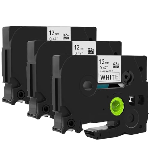Doree 3-pack etiketttejp TZe-231 Tze231 TZ-231 12 mm x 8 m svart på vit kompatibel för Brother P-Touch etikettskrivare H110 H105