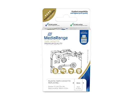 Mediarange - Laminerad - Permanent Häftning - Svart På Vitt - Rulle (1,8 Cm X 8 M) 1 Kassett(Er) Hängande Låda - Etiketttejp (Alternativ För: Brother Tz-241, Brother Tze-241) - För Brother P-Touch Pt-18, 1880, 2030, 2100, 2110, 2430, 2700, 2710, 273