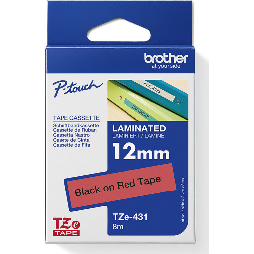 Brother TZe-431 tejp, svart/röd, 12 mm x 8 m