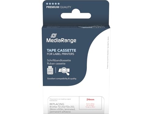 MediaRange bandkassett i plast, för/ersätter Brother TZ-252/TZe-252, permanent självhäftande, 24 mm, 8 m, laminerad, röd på vitt