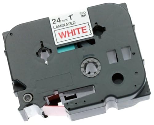BROVACS 1-pack vit på röd laminerad etikettejp kompatibel med Brother P-Touch etikettskrivare TZ 455 TZe 455 24 mm 1 tum OPA4455