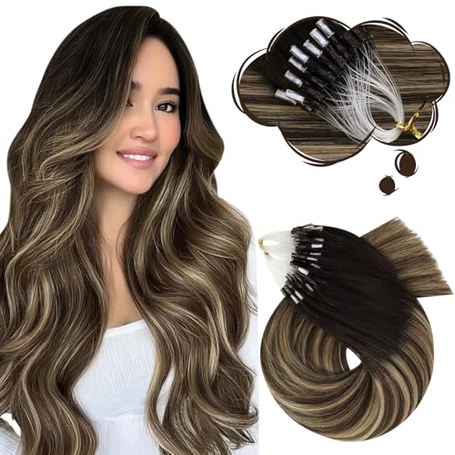 Moresoo Naturlig Microring Balayage-hårförlängning av svart till brun med godisblond, mikro-loop-hårförlängning, naturligt hår, 35 cm, 50S, 50, #1B/3/27, mikrokapselförlängning, 35 cm
