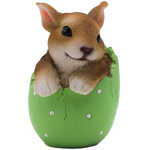 Dekorativa hjälte24 keramisk hare, påskkanindekoration, dekorativ kanin, kanindekoration, påskdekoration, påskhare brun, kläckande i grön äggskål, storlek: L/B/H ca 11 x 9 x 14 cm, 14 cm