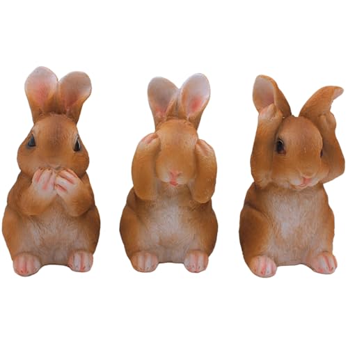 Uppsättning av 3 påskkaniner, dekorativa kaniner, kaninset påsk, påskdekoration hare, se, hörs inte, talar inte, gjord av keramik, leveransomfattning: 3 dekorativa kaniner i brunt, mått på en kanin: