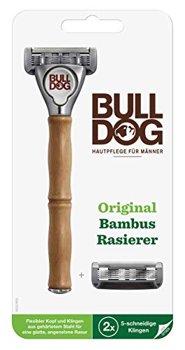 BULLDOG – vårakning för män | original rakapparat med bambumedtag | 5-vägs blad | extra ersättningsblad