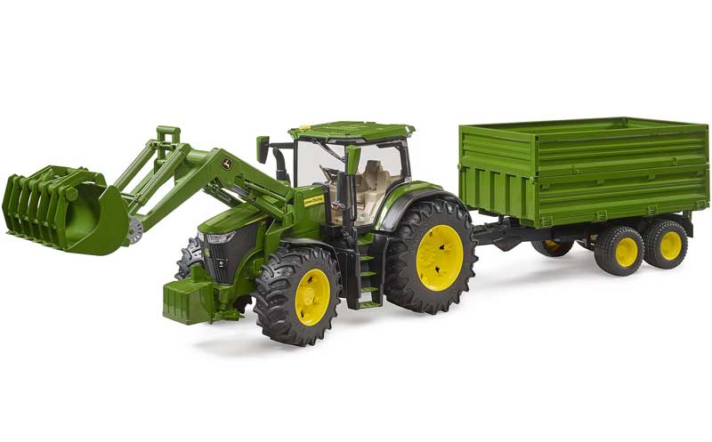 Bruder John Deere7R 350 traktor med frontlastare och släp med tippfunktion - 03155