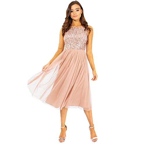 Maya Deluxe Utsmyckad midi-aftonklänning för kvinnor damer V-hals med kort ärm för bal bröllop brudtärna klänning (paket med 1), Frostad rosa, 36