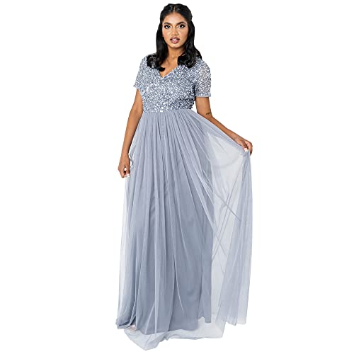 Maya Deluxe damklänning för bröllopsgäster, överdimensionerad, hög midja, paljetter, kortärmad, aftonklänning, brudtärna, bridesmaid klänning, blå, 54 SE