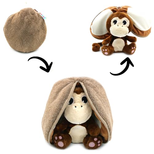 LES DÉGLINGOS FLIPETZ - Kokosnötgosedjur apan/kokosnöt - vändbar apa med gömställe - mjuk babyplysch - presentidéer för födseln, brun