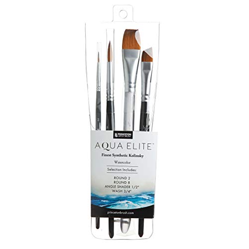 PRINCETON ARTIST BRUSH CO. Aqua Elite Fine Art akvarellpensel, syntetisk Kolinsky-zobel, 4-delat penselset, kort handtag, perfekt för proffs och studenter