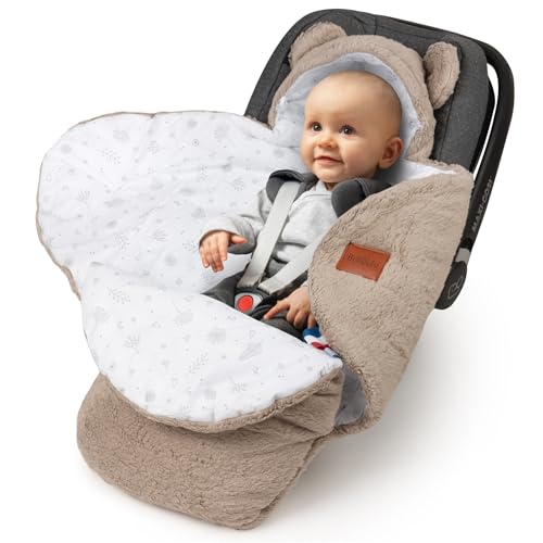 BELLOCHI Filt för inlindning, för babystolar, brun, babyfilt för barnvagn, 90 x 90 cm, för bilstol, barnvagnsfilt, mjuk babyfilt i bomull, Oeko-Tex, vinterfilt för barn