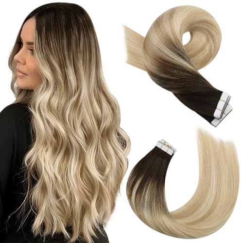 Moresoo Tape Extensions äkta hår balayage blond brunt hår tejp äkta hår förlängningar hårförlängning äkta hår tejp långt hår 55 cm #8/22/8 25 g 10 st
