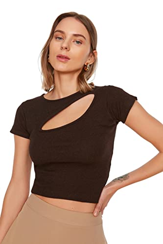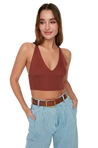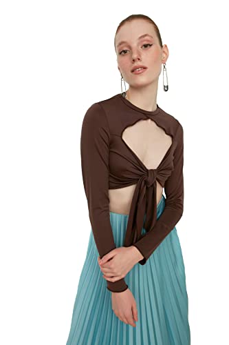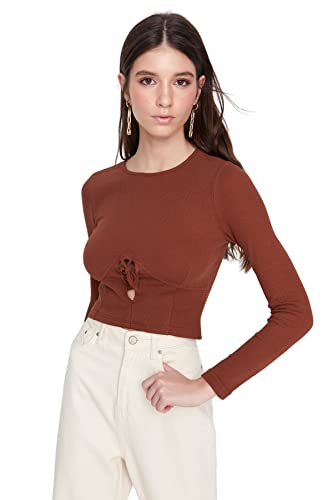 Trendyol Dam brun supercrop Connecting Detailed stickad blus, BRUN, XS