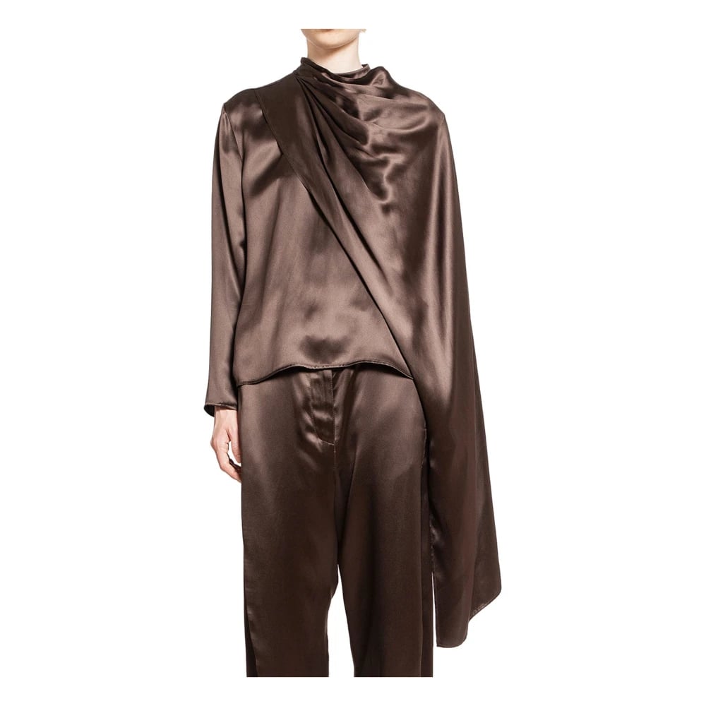 Magda Butrym, Blusar & Skjortor , Dam, S, Silkessatin Brun Blus