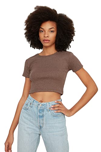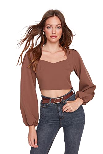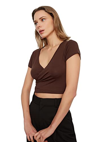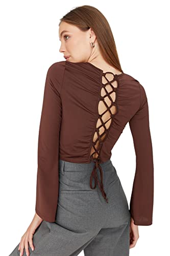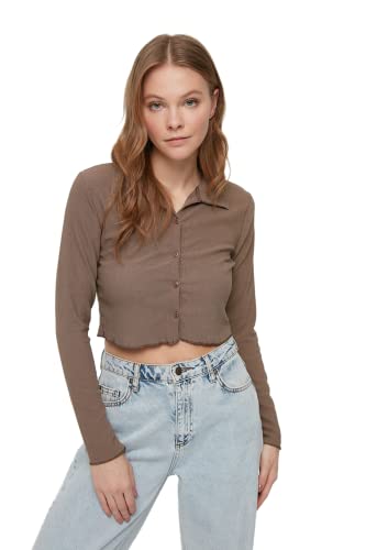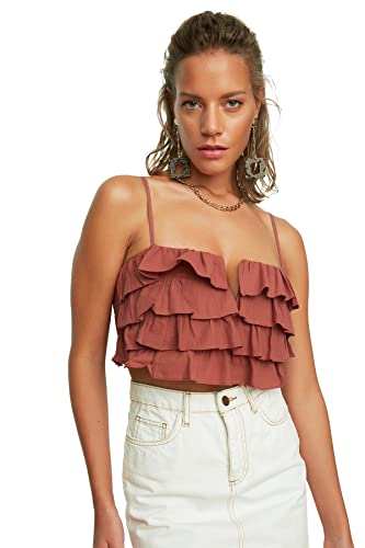 Trendyol Kvinnors brun frilly crop-vävd blus blus, brun, 40