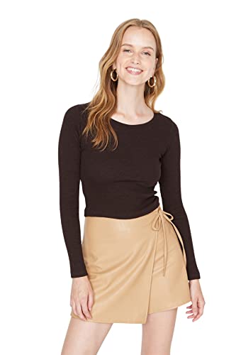 Trendyol Dam anpassad basic rund hals stickad blus, Brun, L