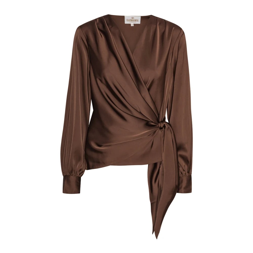 Karmamia, Blusar & Skjortor , Dam, XS, Elegant Brun Blus med Asymmetrisk Skärning