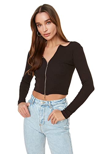 Trendyol Dam brun dragkedja stickad blus blus, brun, extra liten