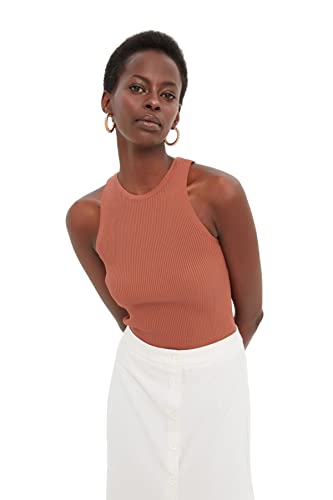 Trendyol Dam vanlig axellös kragkrage hög hals stickad blus, Brun, XL