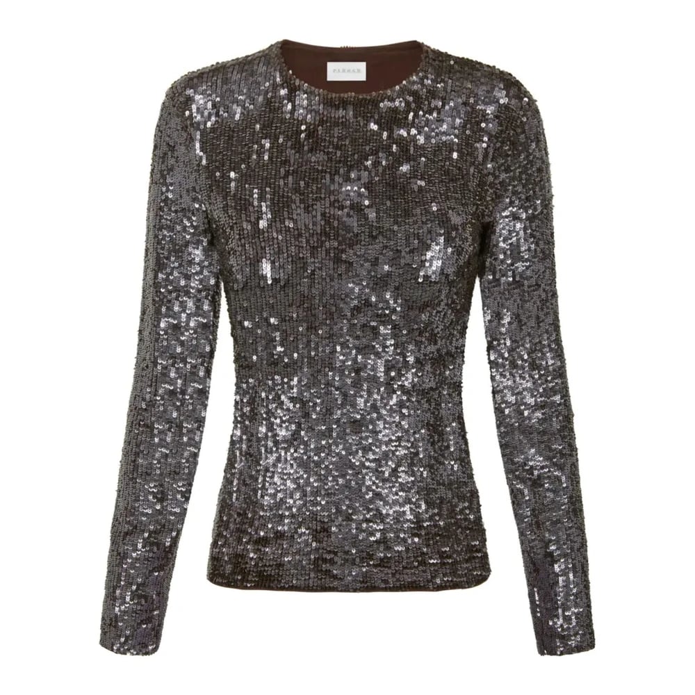 P.a.r.o.s.h., Stickade Tröjor , Dam, M, Paljetter, Paljetter Brun Blus, Rund Hals, Lång Ärm