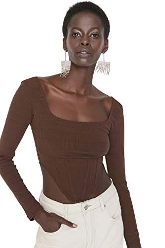 Trendyol Dam figursydd fyrkantig krage stickad blus, Brun, M