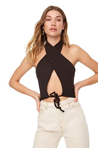 Trendyol Dam anpassad basic halterneck vävd blus, Brun, XL
