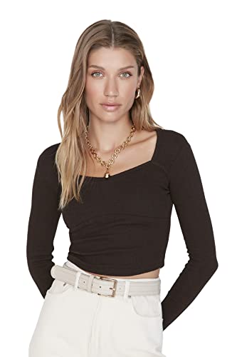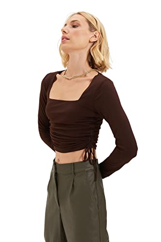 Trendyol Dam crop basic sweetheart stickad blus, Brun, L