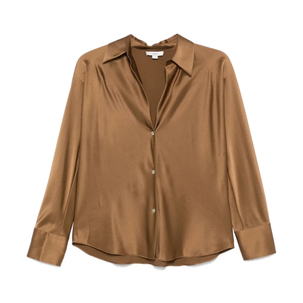 Vince, Blusar & Skjortor , Dam, S, Elegant Brun Silke Långärmad Blus