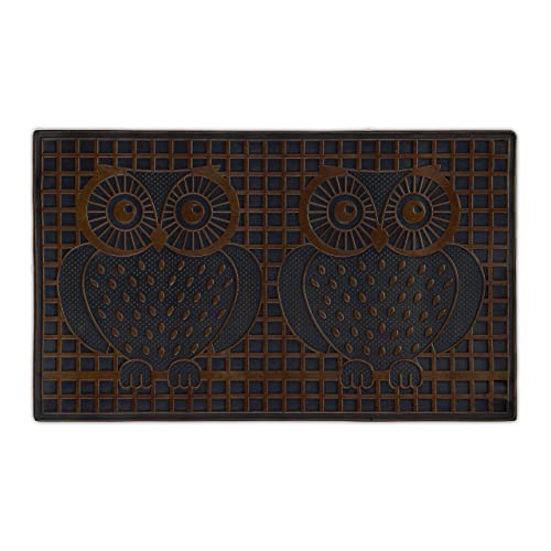 Relaxdays Gummidörrmatta Ugglor dörrmatta, 75 x 45 cm, halkfri, slitstark, inomhus och utomhus, dörrmatta, brun