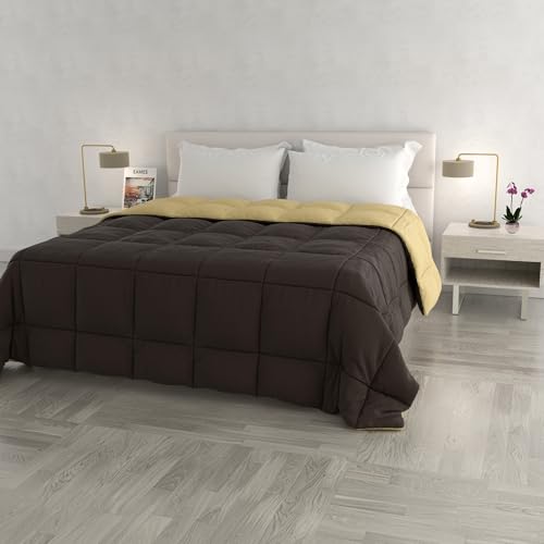 Elegant dubbel dubbel vintertäcke, tillverkad i Italien, tvåfärgad mjuk mikrofiber vändbar dunjacka 300 g/m² - Maskintvättbart täcke Brun/grädde