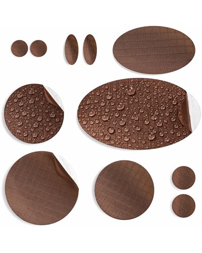 aZengear Reparationslappar för dunjacka, förklippt, självhäftande, mjukt, vattentätt, rivbeständigt rip-stop-nylontyg för att fixera hål i kläder, sovsäckar, skidbyxor (11 delar, Brun)