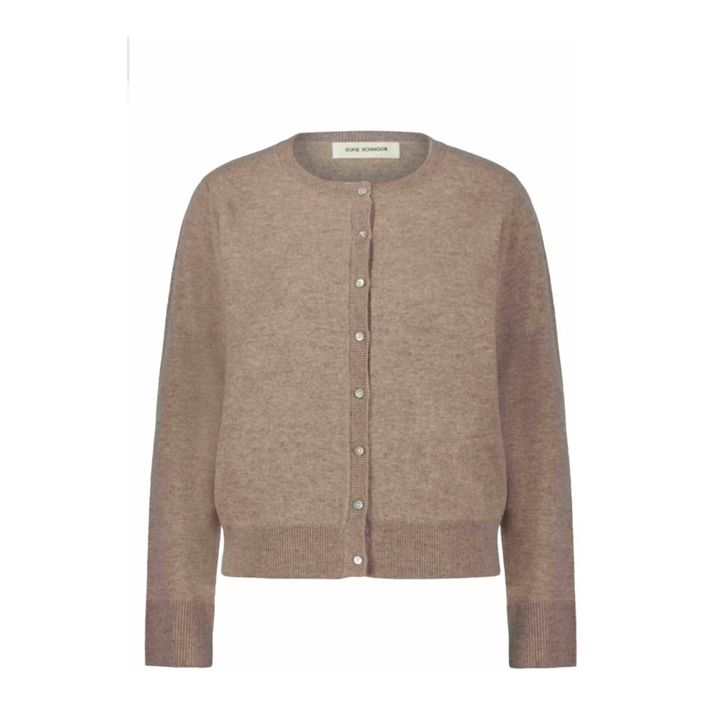 Sofie Schnoor, Stickade Tröjor , Dam, L, Brun Melange Kofta med Knappar
