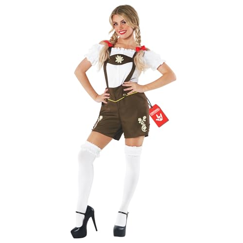 Fun Shack Lederhosen kvinnor, Oktoberfest-outfit kvinnor, bayersk kostym kvinnor, Lederhosen outfit, Brun, S