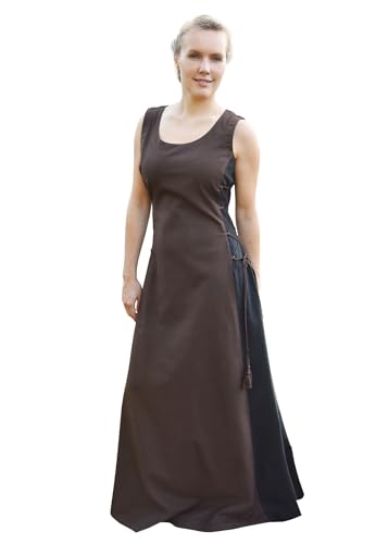 Battle-Merchant – ärmlös medeltida klänning Jarle – vikingaklänning för kvinnor – medeltida, kostym, LARP, Fantasy, Brun/svart, XL