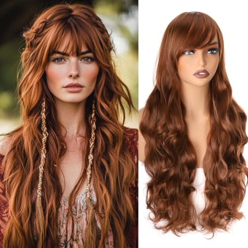 Colorful panda 28 tum/70 cm brun lång lockig vågig cosplay peruker för kvinnor Flickor Barn Anime kostym fest Halloween karneval peruk värmebeständigt syntetiskt hår