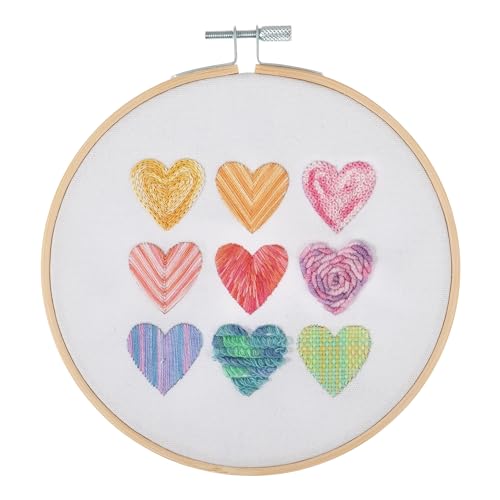 Trimits Broderi Hoop Kit - 15 cm 6 tum Nybörjarset, Inkluderar Bambu Hoop Trådar Tyg Nål Baksida & Instruktioner, Ombre Hjärtan