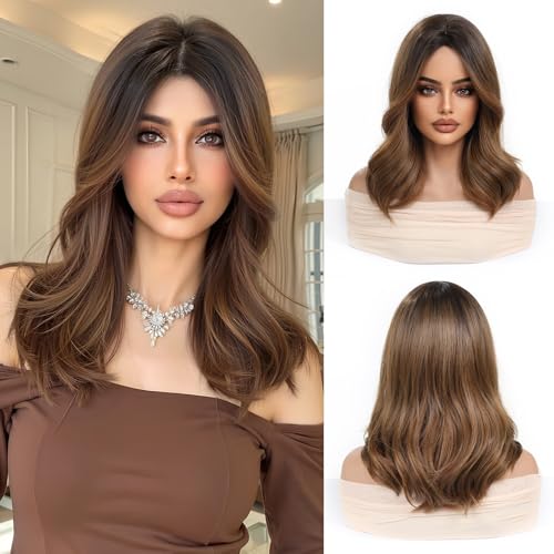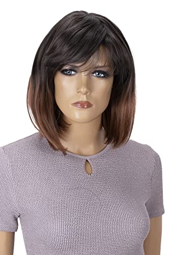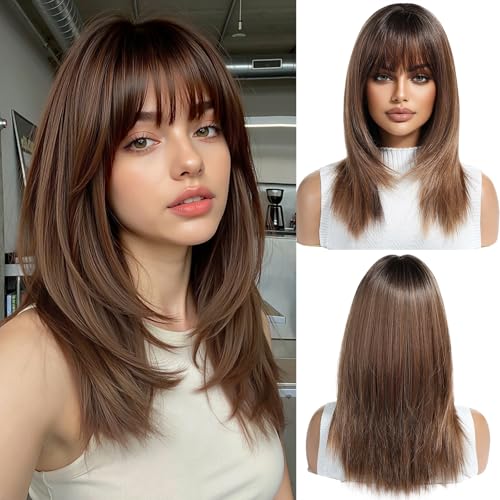 OUFEI Ombre Brown Peruker för kvinnor Medellånga raka peruker med lugg Syntetiskt hår Värmetåliga peruker för daglig användning, fest och cosplay