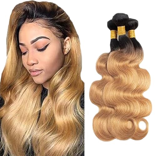 Gsoroel Body Wave Bundles Human Hair Extension Brazilian Virgin Hair No Tangle No Smell For Women 100% Unprocessed Bundles 1b/27 Ombre Brown Color 3 Bundles Total 300g 26 28 30 Inch