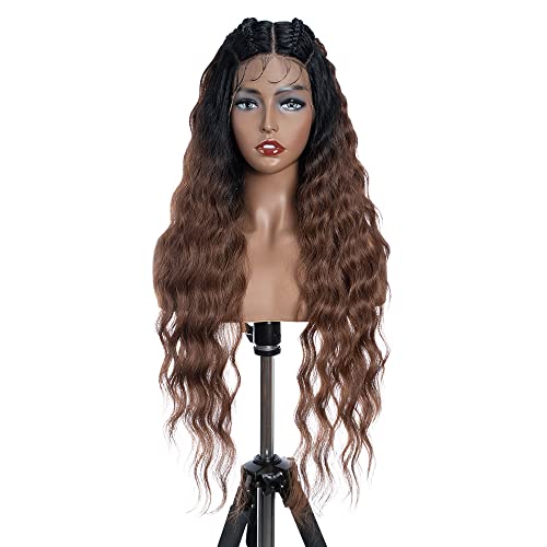 Esmee 24 tum Brun syntetiska peruker för kvinnor mörka rötter lång peruk med pannor Ombre vågigt hår Realistisk simulering hårbotten mittpartiet
